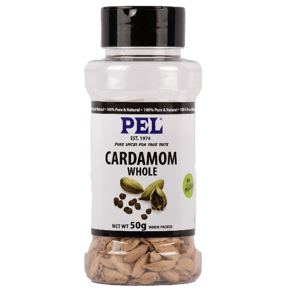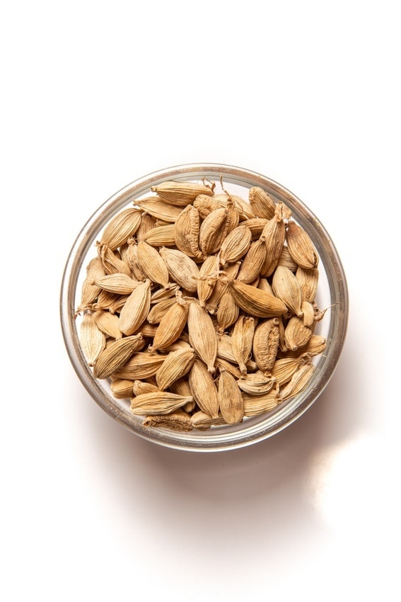 Cardamom pods contain tiny black seeds from which ground cardamom is made. Cardamom powder has a subtle fragrance and is used to heighten the flavors in meat, and rice dishes.